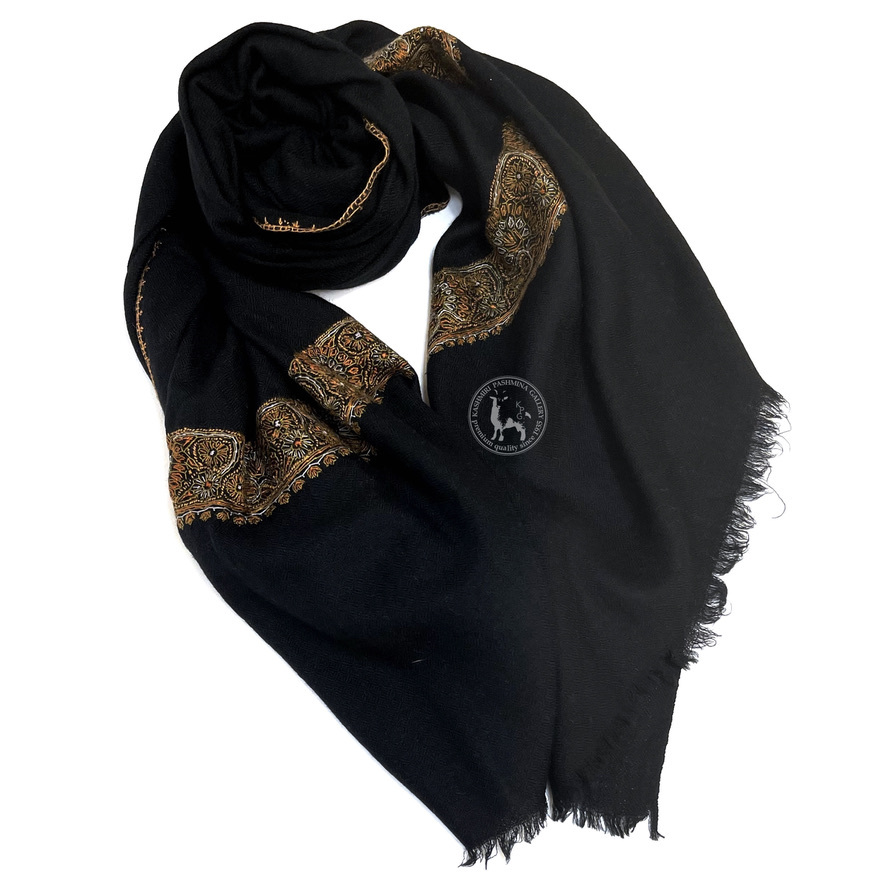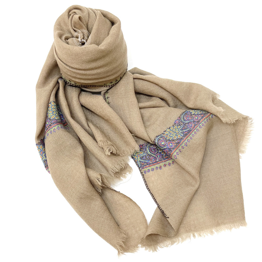 Kashmiri Pashmina Gallery 源自1935年位於印度北部喀什米爾斯利那加的品牌。對於在喀什米爾出生和長大的人來說, Pashmina 不僅僅是一種產品——它體現了當地數百年來精湛的工藝和文化遺產,其歷史可以追溯到15世紀。 15世紀,波斯聖人米爾·賽義德·阿里·哈馬達尼來到喀什米爾,與當地工匠分享他的知識,培訓了700名工匠,其中包括精通 Pashmina 編織的工匠。手工 Pashmina 刺繡的傳統代代相傳,每件作品都需要工匠大師至少半年的時間才能完成。每一件作品都體現著非凡的刺繡技藝、耐心、專注和奉獻精神,這些都根植於喀什米爾地區悠久的工藝和文化遺產。